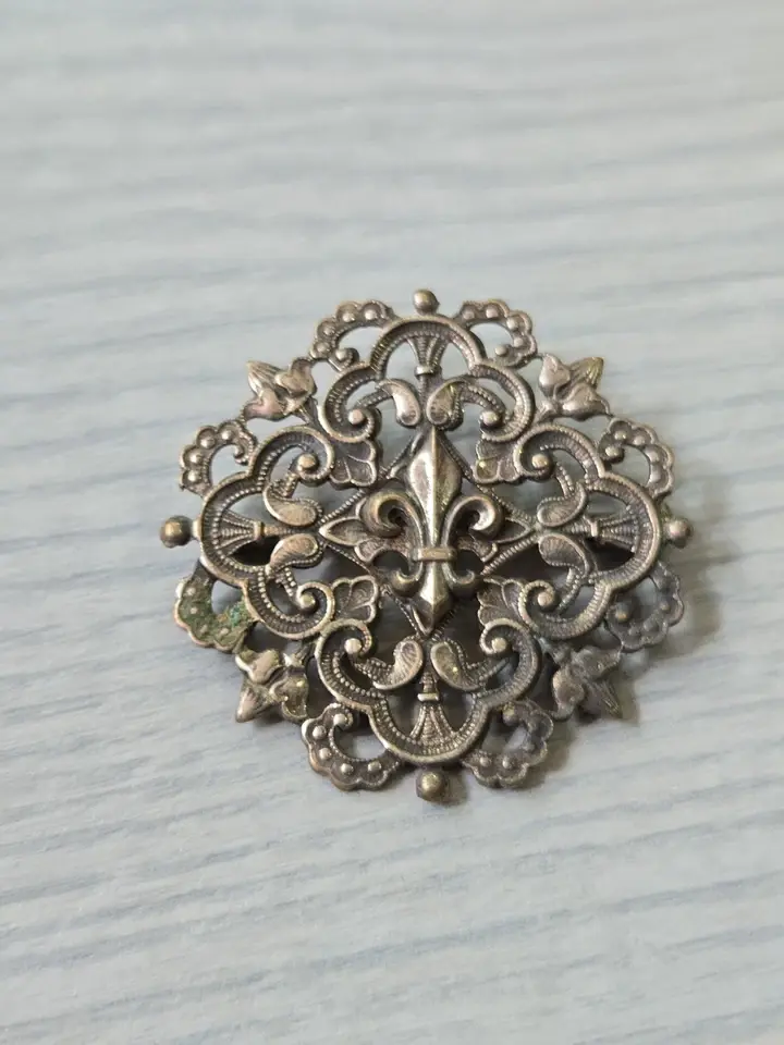 French Art Nouveau Brooch Fleur de Lis Trombone Clasp Gorgeous