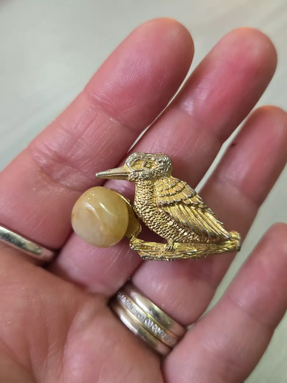 Australian Vintage Woodcock Bird Brooch With Natural Stone Cute