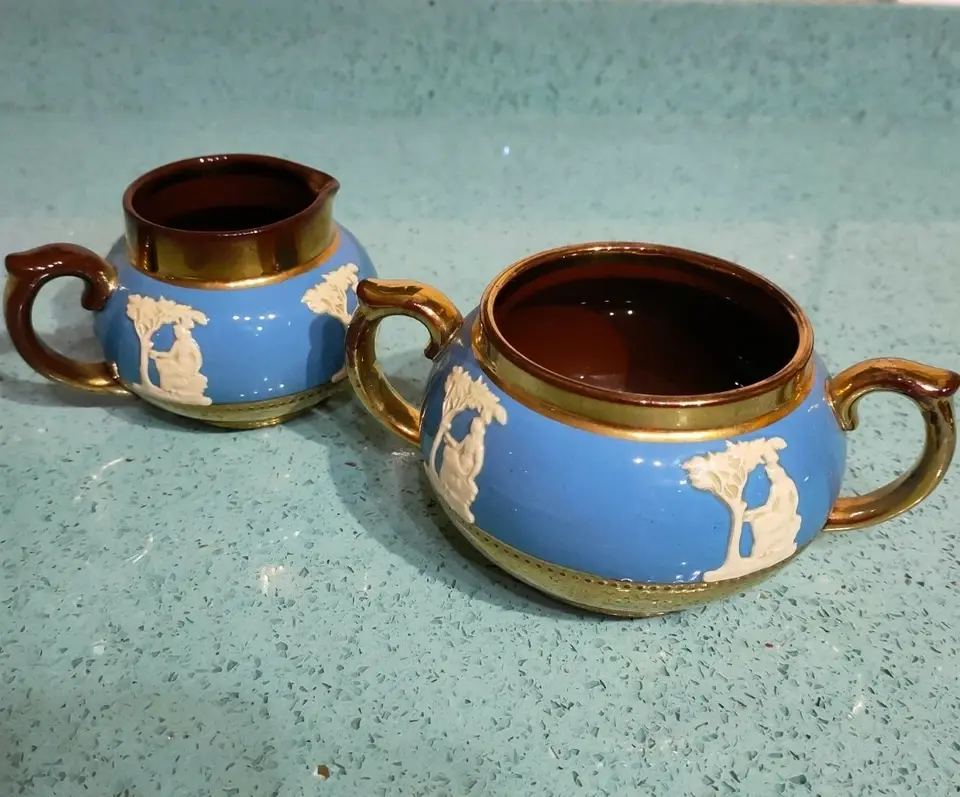 1950's Gibsons Staffordshire Jasper Ware Creamer And Sugar Pot