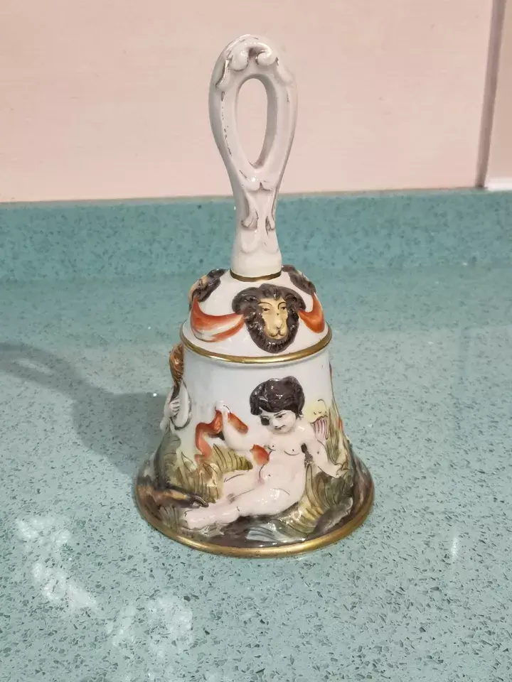 Beautiful R Capodimonte Keramos Porcelain Large Bell With Cherubs Design