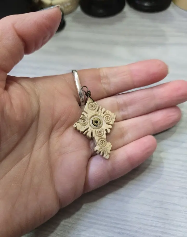 Beautiful little cross, it is an antique piece, the photograph inside is a photo from the last supper, La Cene. In good condition the photo, can't take a good photo a bit tricky. The cross measures approx 3.5x2.5cm. Sweet. Thanks for looking:-)