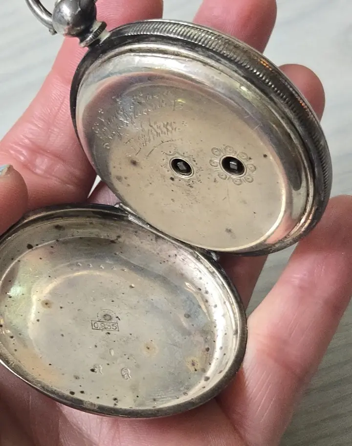 The condition is ok, missing the glass, has a hairline and a bit of damage on the enamel. The covers are good for its age. It has the name engraved inside. Reg number 60624, made of 935 silver. Great quality watch and rare. 99g heavy. The diameter approx 5cm. Thanks for looking and please study photos to be happy with the condition:-)