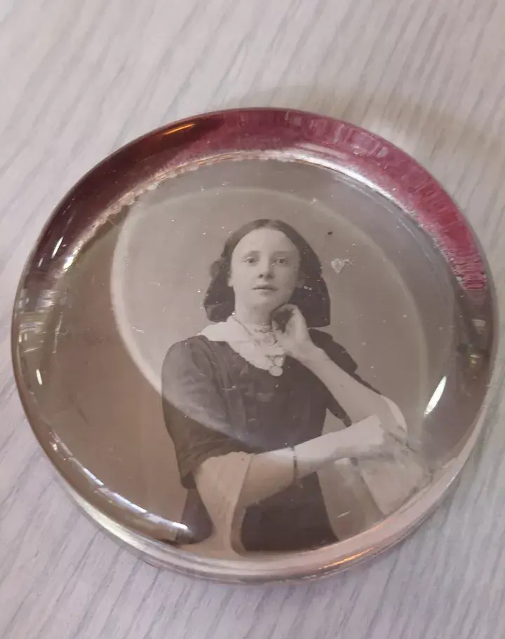 Antique/Vintage Paperweight With Portrait Of A Victoria Lady, Handmade