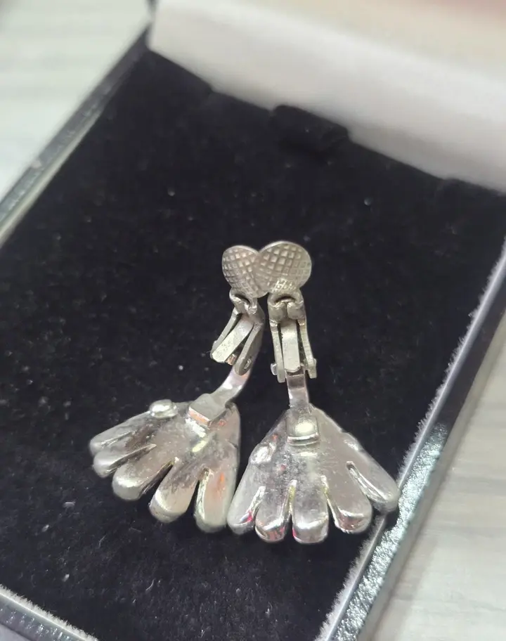 These earrings are fun, great condition for their age. One measures approx 1.5cm . Please study photos. They are clip on, the box just for display. Thanks for looking.