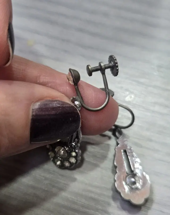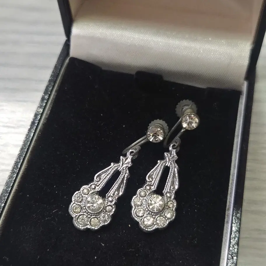 Art Deco Rhinestone Diamanté Earrings 1920's Drop Screw Backs Beautiful