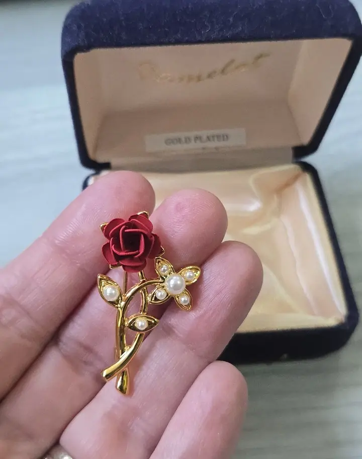 Camelot Jewellery Gold Plated Rose&Pearls Brooch Pin Costume Jewellery