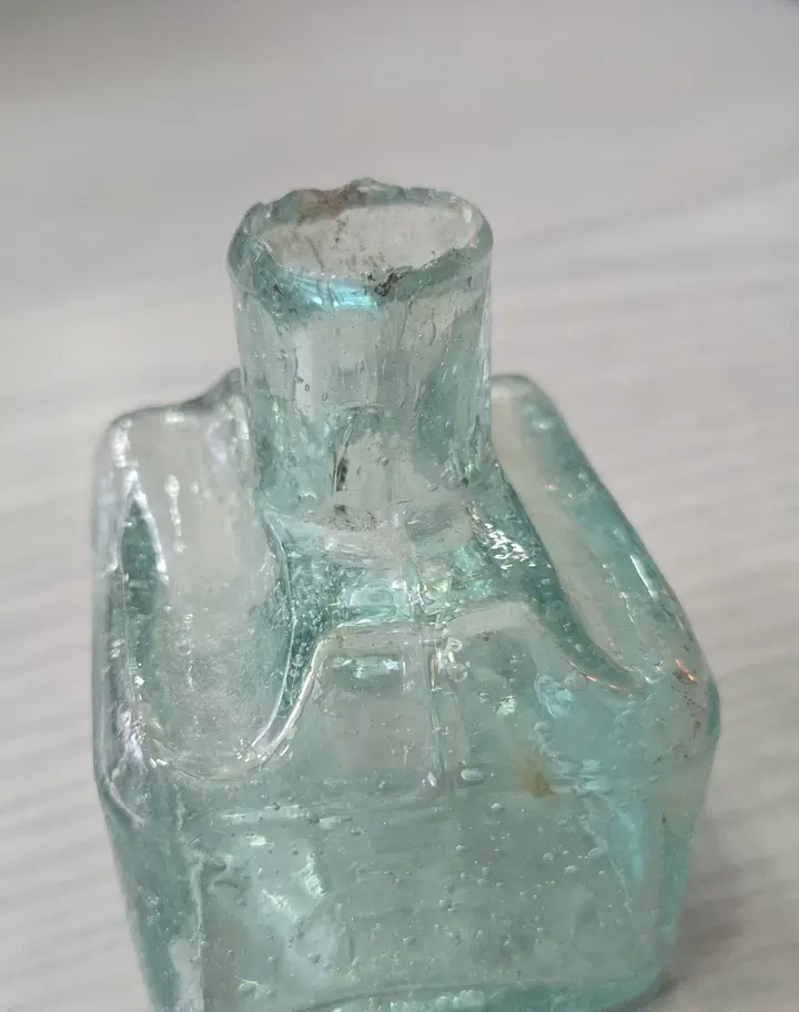 Early Victorian/ Late Georgian Aqua Glass Inkwell Ink Bottle