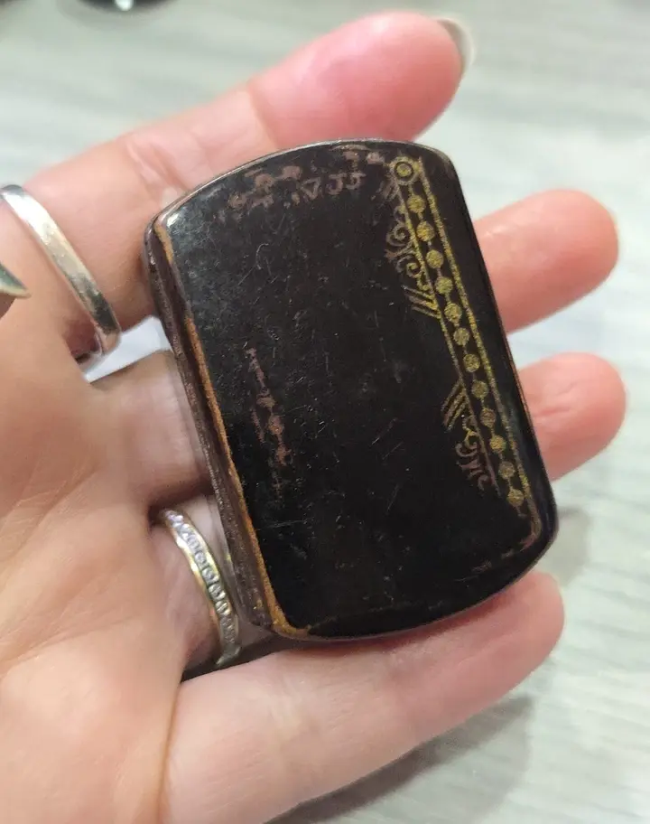In nice condition for its age, measures approx 5cm. Some of the gilt is worn. Thanks for looking:-)