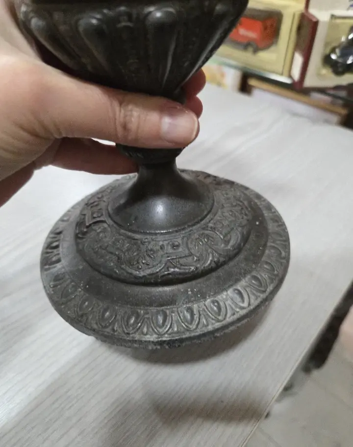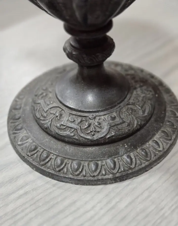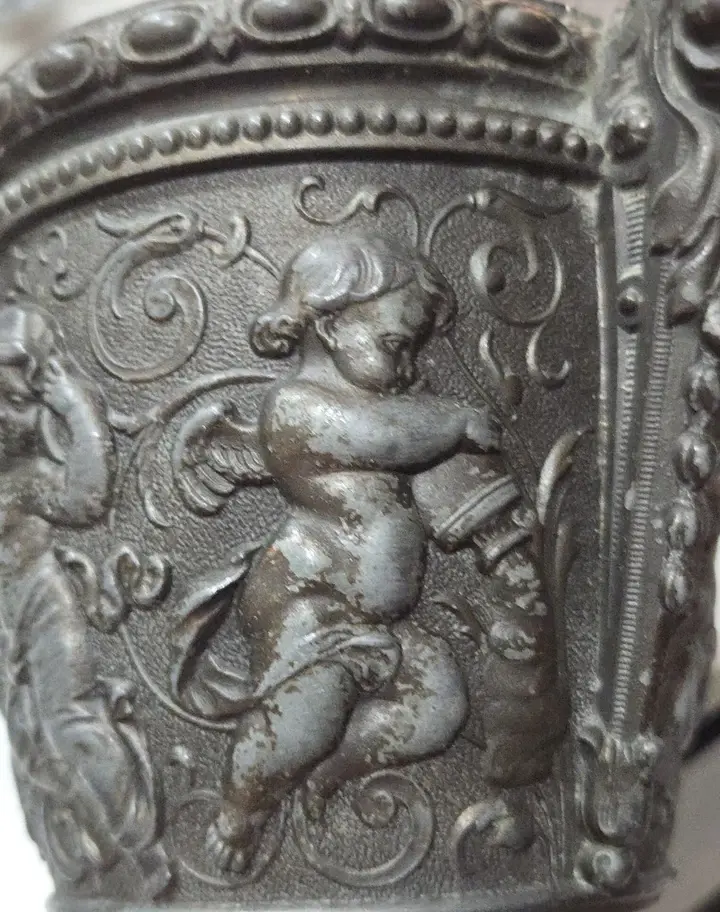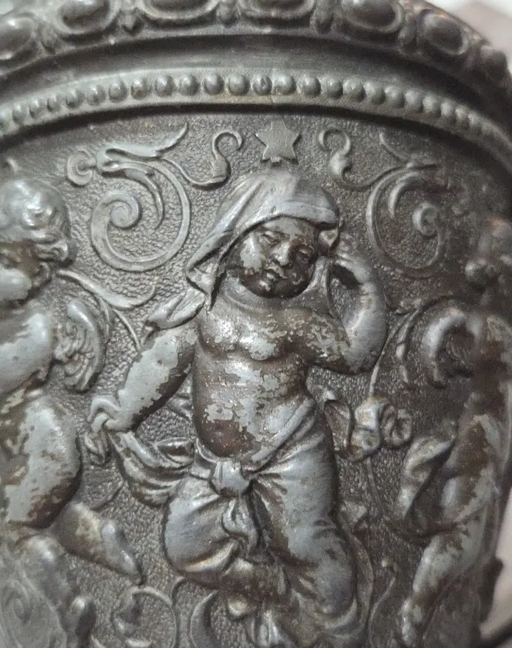 Heavily Embossed Pewter Chalice, Goblet Cherub Angels Antique Victorian Heavy