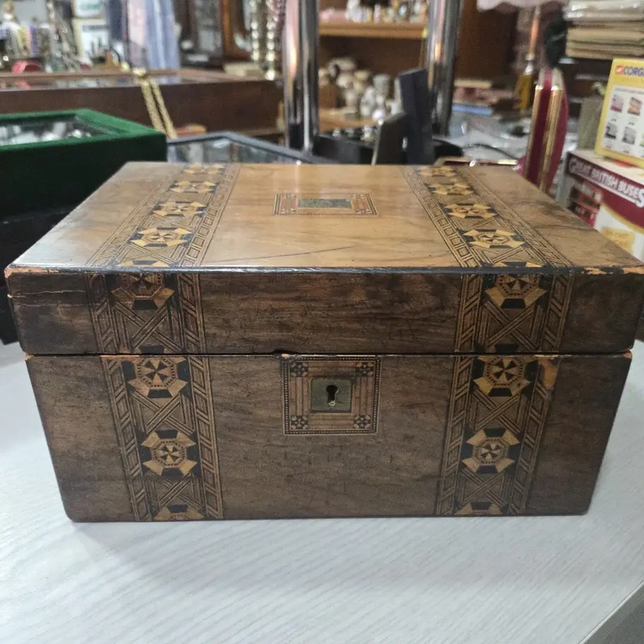 Intricate 1910s Marquetry Inlaid Wood Box Large