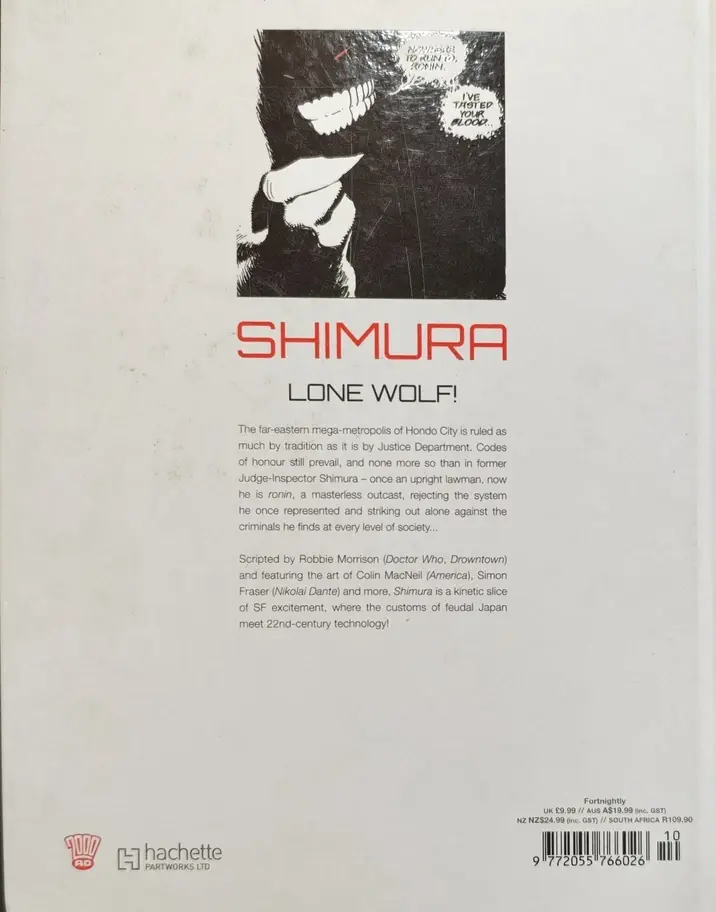 Written by Robbie Morrison with art by Colin MacNeil, Simon Fraser, and others, this volume explores themes of honour, corruption, and rebellion in a dystopian Japan-inspired setting.