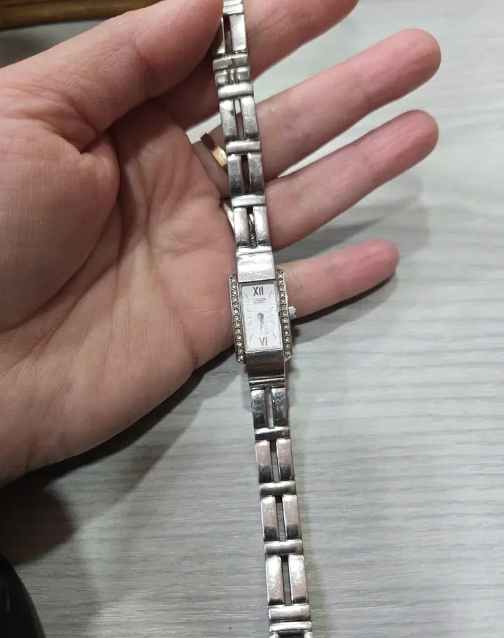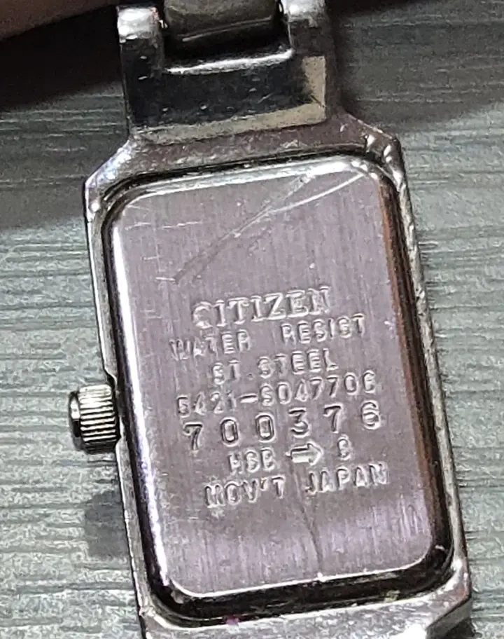 Nice vintage ladies watch, it needs battery,not tested by my,buy as seen. The glass is worn still can be left as it is but possibly replacement would help. Measures approx 3.5cm×1.5cm. The serial number on the back is 5421- S047706 700376. Nice watch, the price will reflect the condition:-)