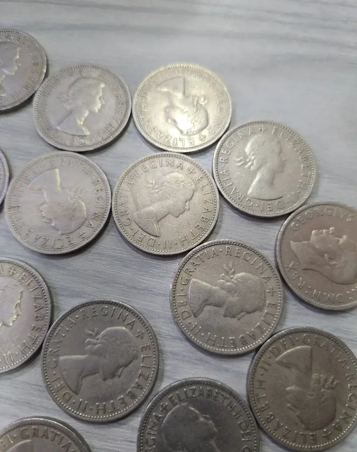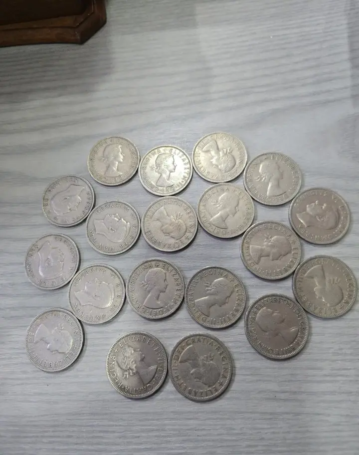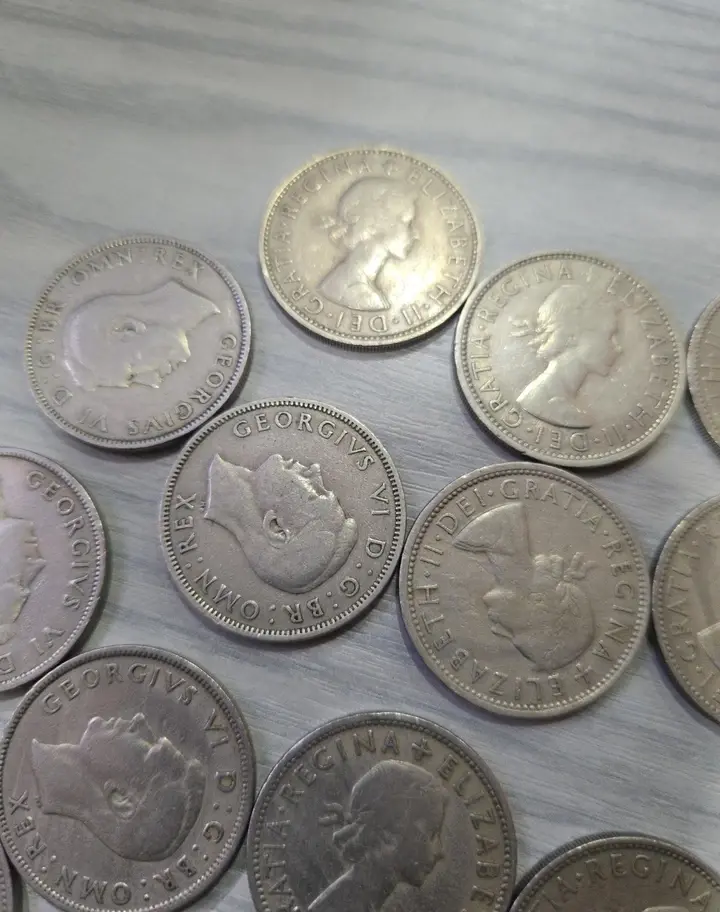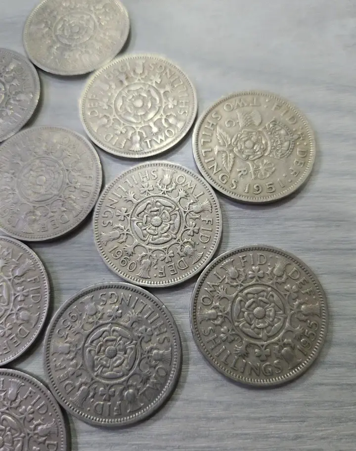 I did not check if they are all the years consecutive but lots of diferite years. I added photos for you to see. 19 Two Shillings 1947 up to 1966. But please check photos to check the years for yourself. Thanks for looking:-)