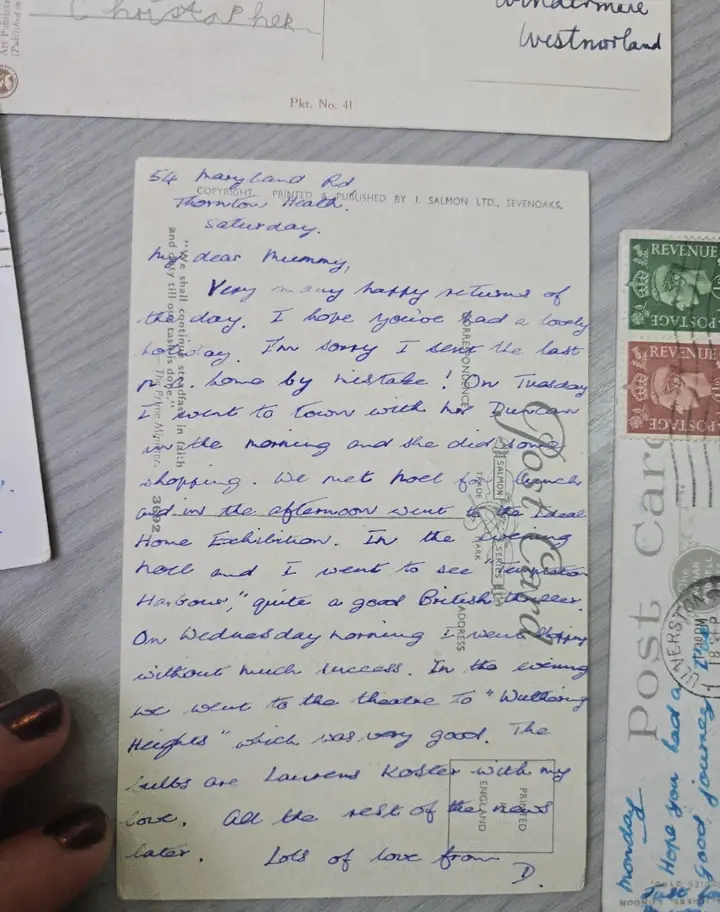 Lot Postcards Glover Family 1939 45 48 Flowers Watercolour Windermere Lancashire
