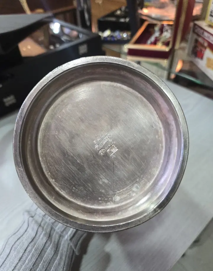 This is fab! Late Victorian cc.1900. Hallmarked M.H& Co Martin-oid. The condition is good, minor dent on the base not noticeable. I didn't clean it, I like like this :-) But when polished will be even nicer. It is heavy, good quality piece. Measures approx 11cm top diameter and 17cm without the handles. Thanks for looking:-)