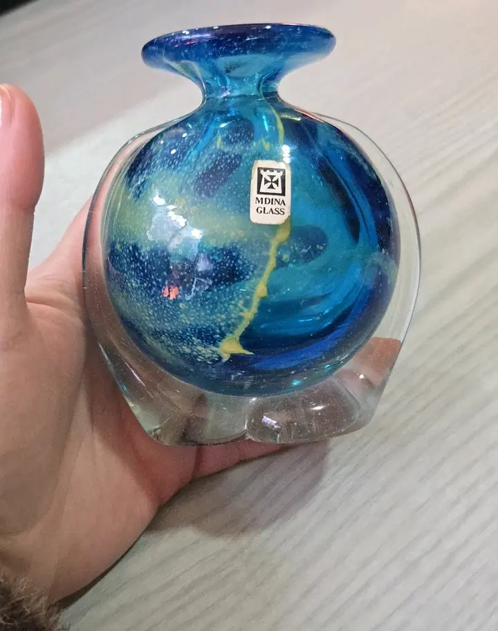 Mdina Glass Paperweight Vase Ornament Early Example 1960s/70s Signed Label Malta