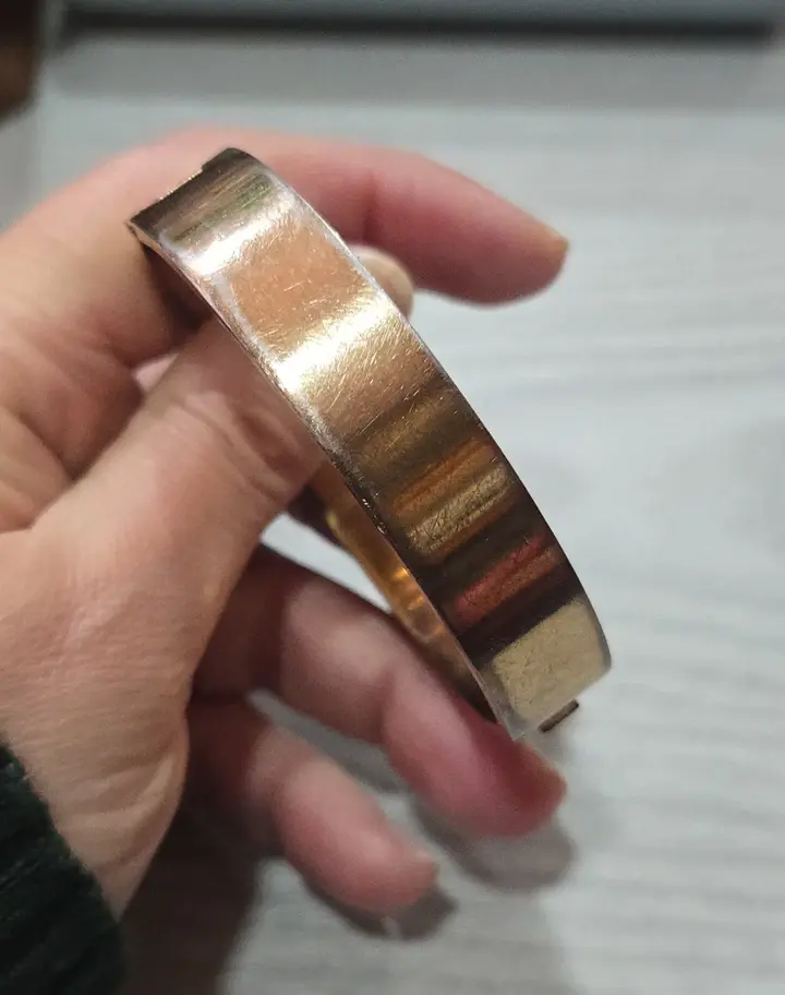 Nice bangle,it has been worn so signs of ageing are visible. Some of of crystals are missing but only visible if looking close. Inner measures 6cm,generic size. The clasp is secure, the price will reflect the condition. Thanks for looking:-)