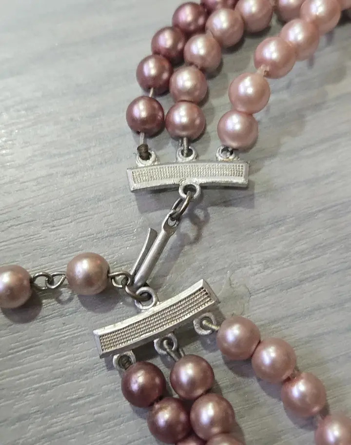 Mid Century 1950's 3 Strand Pink Pastel Faux Pearl Necklace