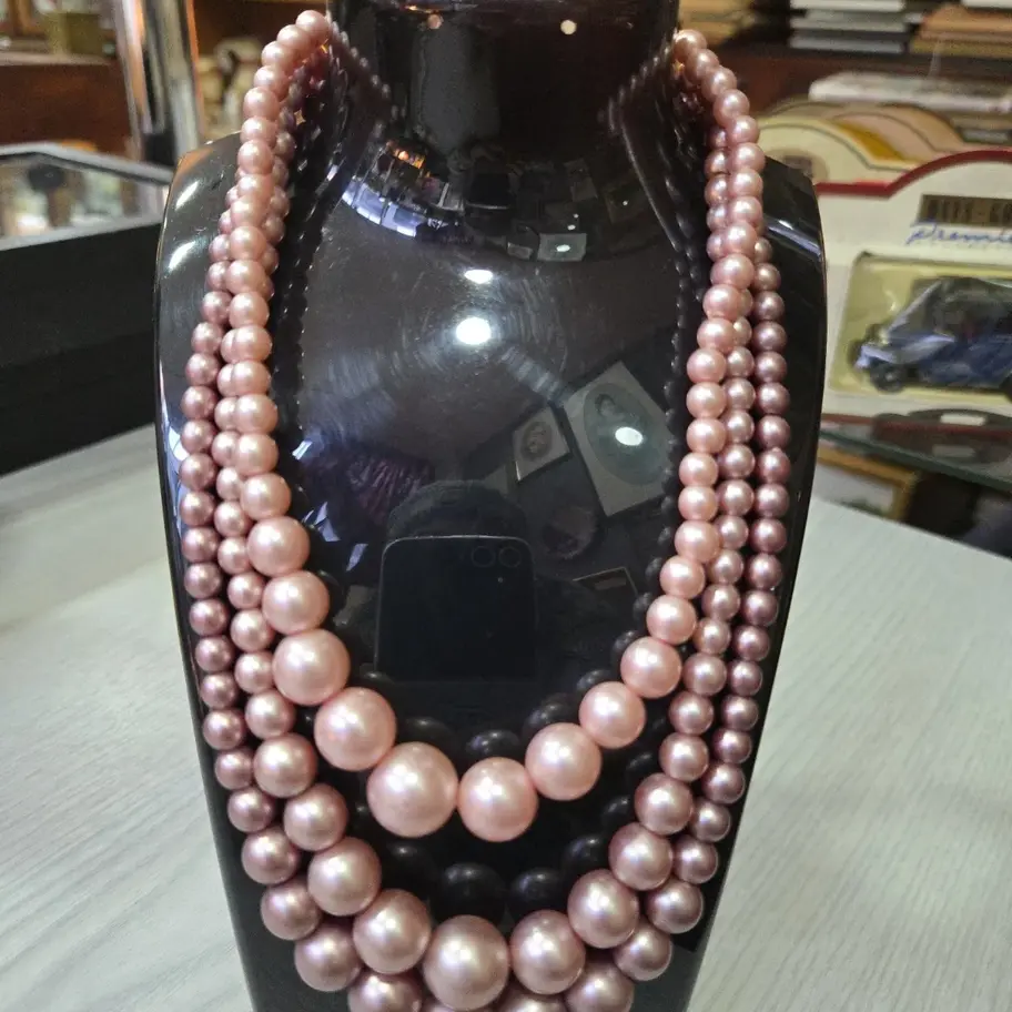 Beautiful necklace in good vintage condition, it has 3 nuances of pastel pink from light to dark. Measures approx 38cm without the extension,measured on the smallest strand. Thanks for looking:-)
