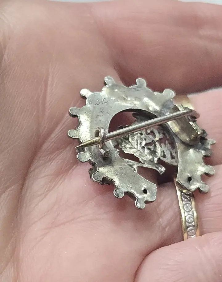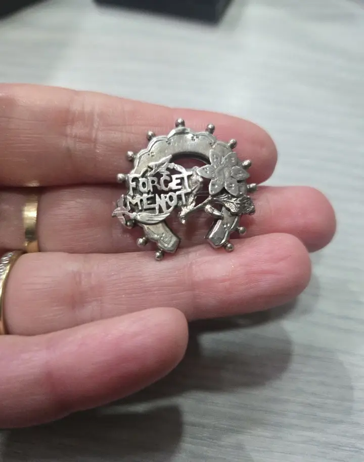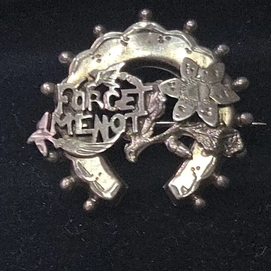 Antique Silver "Forget Me Not" Horseshoe Sweetheart Brooch Chester 1914