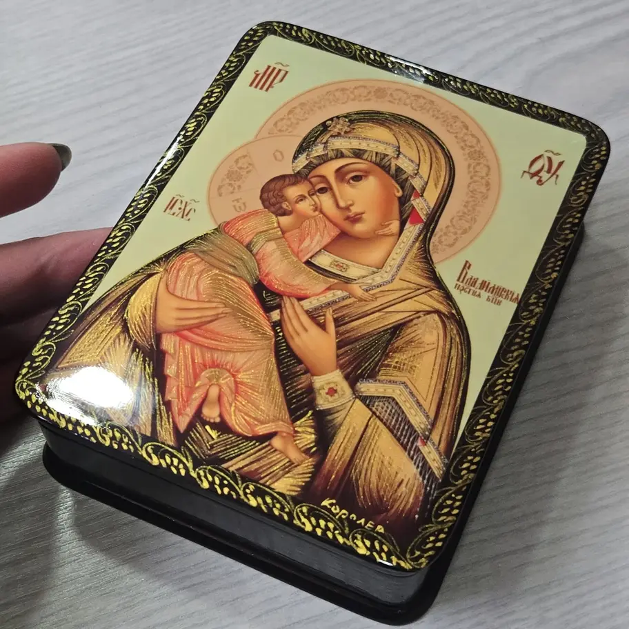 Palekh Russian Lacquered Box Icon Korolev Saint Mary&Baby Jesus