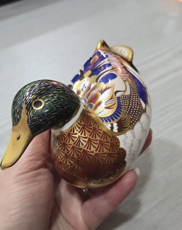Royal Crown Derby Mallard Duck Paperweight - Gold Stopper 2001 Imari