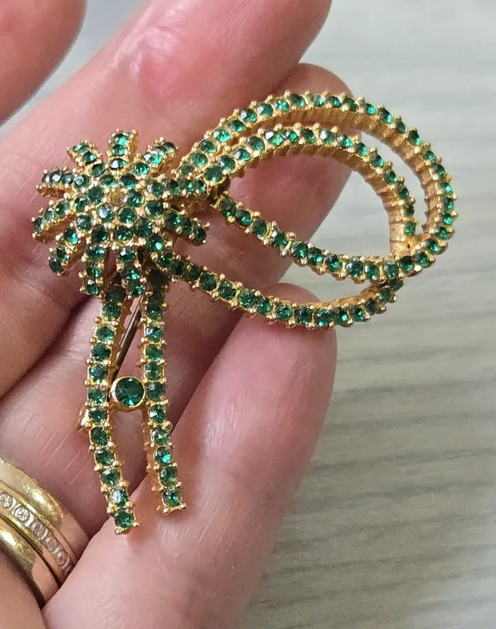 Sphinx Brooch Green Paste Rhinestones Signed Beautiful