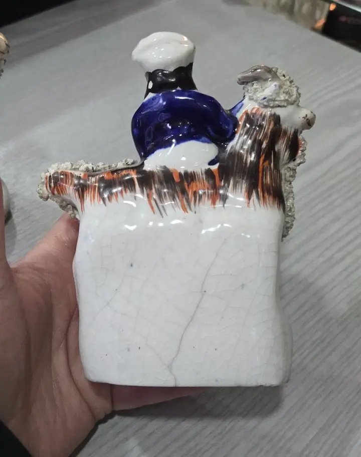Gorgeous pieces. Original Staffordshire flat back pieces in good antique condition. Crazing, and one has a hairline but still solid. Please study photos,I took a good few. One measures approx 14cm in height and base approx 8x5cm. Thanks for looking:-)