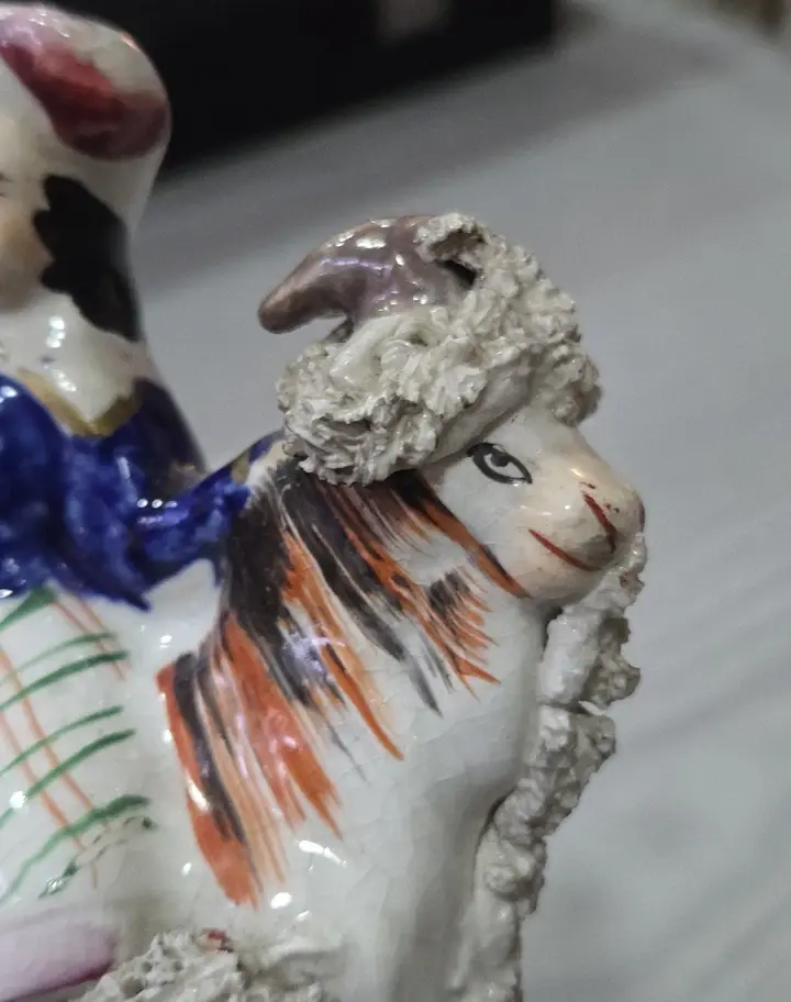 Staffordshire Pottery Flat Back Figurines Victorian Cc.1860 Girl On Billy Goat