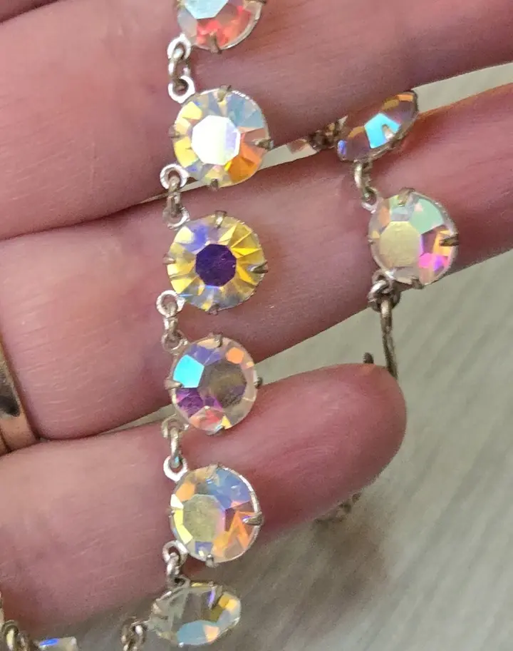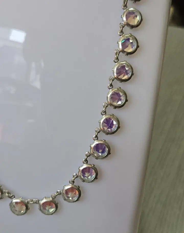 Stunning 1950's Bezel Set Aurora Crystal Necklace Claw Set Approx 41cm.