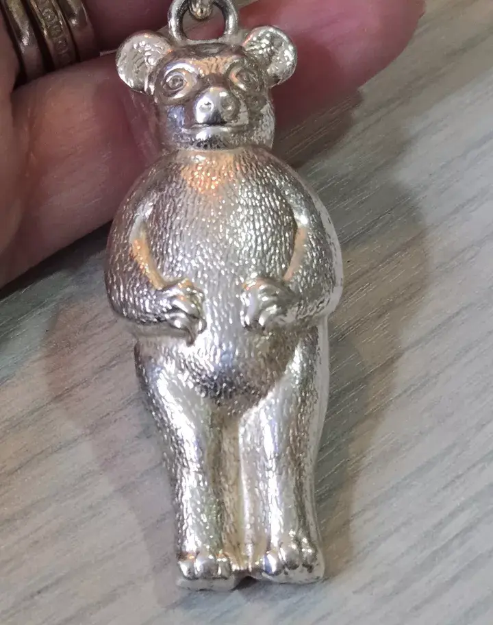 Teddy Bear Rattle White Metal 1930s So Cute