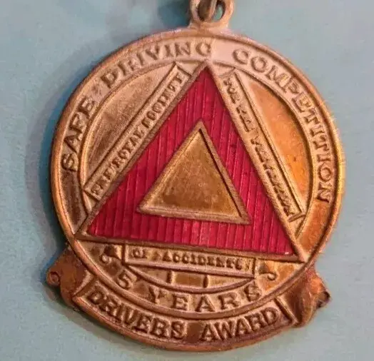 One medal is marked "Safe Driving Competition 5 Years Drivers Award". The other is marked "10 Years Safe Driving".