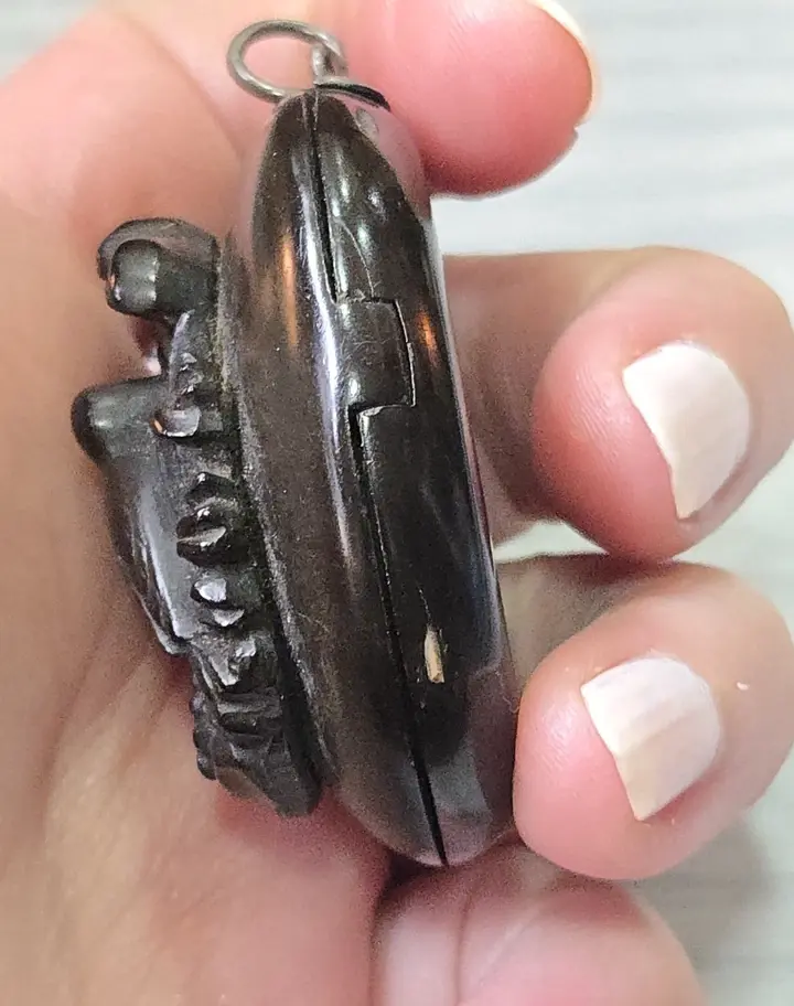 Victorian Carved Whitby Black Jet Mourning Large Locket