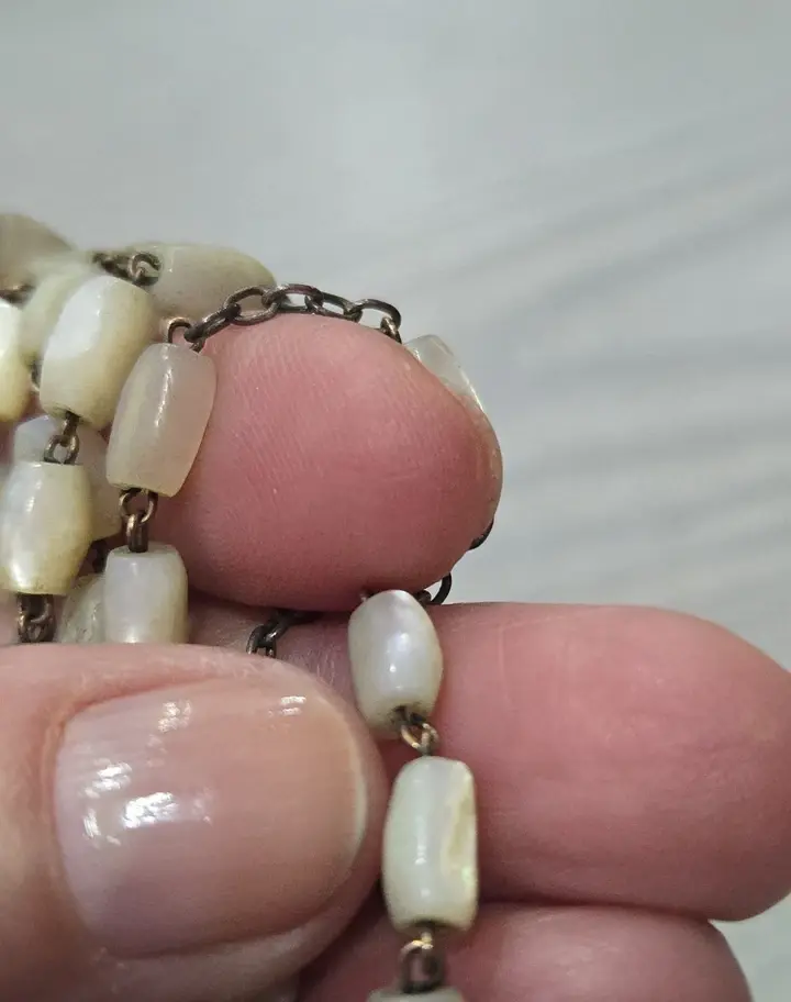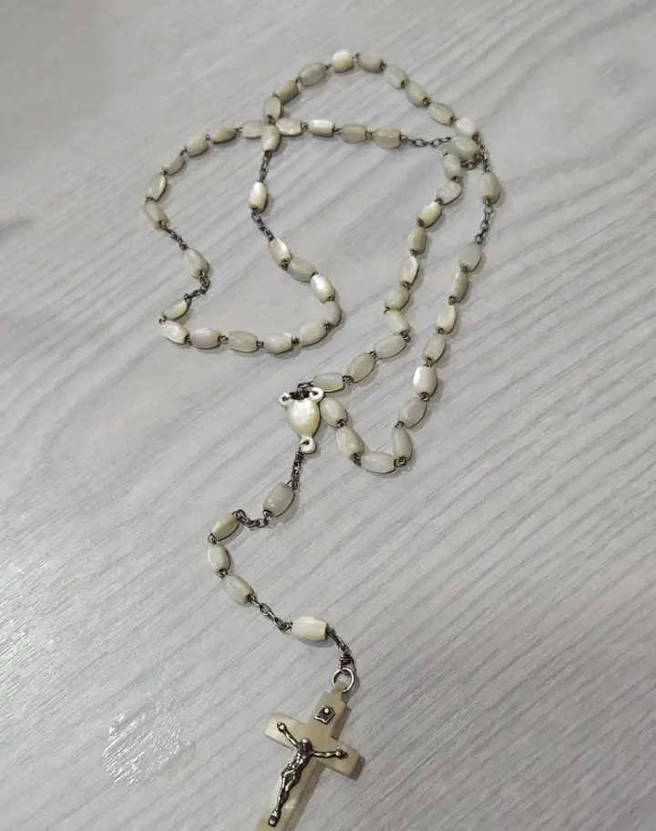 Victorian Catholic Rosary Hand Carved Mother of Pearl Beautiful Antique Piece