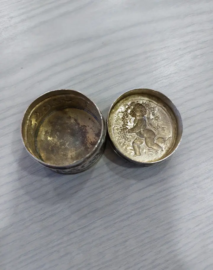The hallmarks very good and visible. It's heavy 40g, and the measures are base diameter aprox 4cm and height 2.5cm. Stunning box. Thanks for looking:-)
