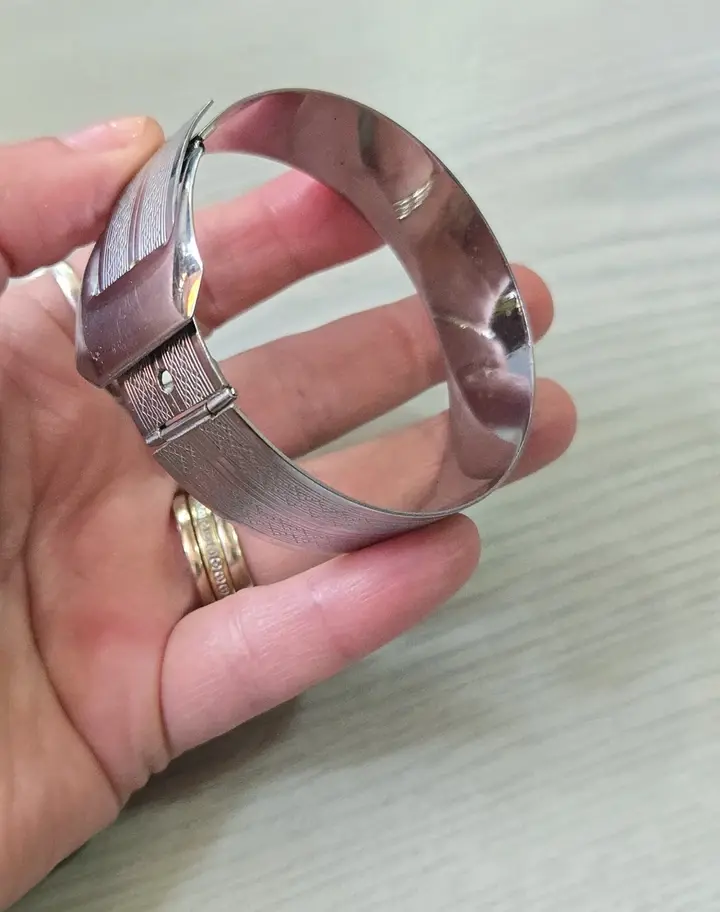 Vintage 1930s Art Deco Buckle Bangle Chrome Plated N C Reading & Co Adjustable