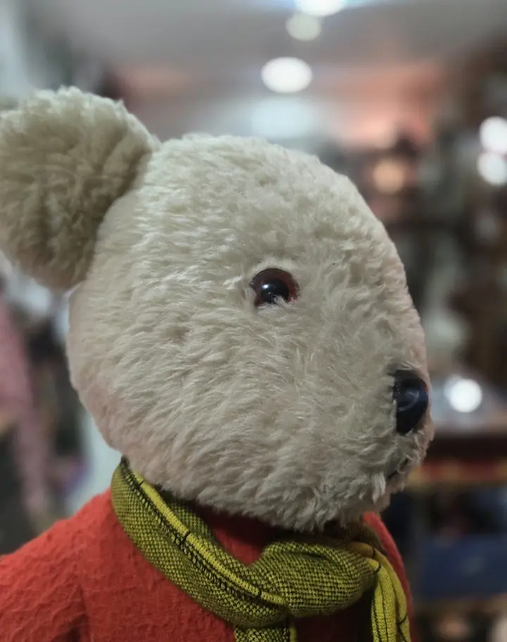 Hi is just too cute. Big approx 55cm - 22 inch, good condition, one foot I see has some repair please check photos. The string is missing so not sure if it works, I would presume it does,but I sell it as it is. He is just adorable. It has the label for Burbank Toys 1970s. Thanks for looking:-)