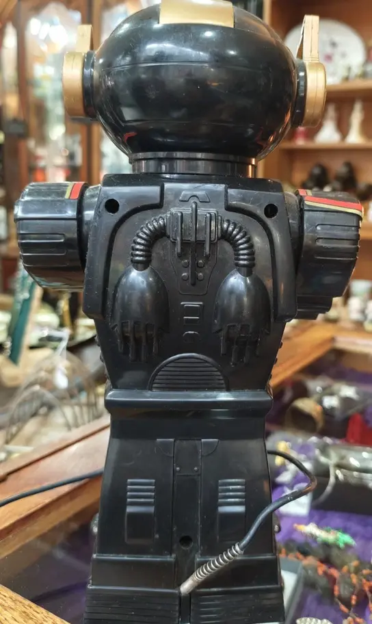 A complete and working example of the Pan Toy Talk‑A‑Tron robot with functioning movement, lights, sound, and voice microphone system. Very cute retro robot! Please study video and photos carefully.