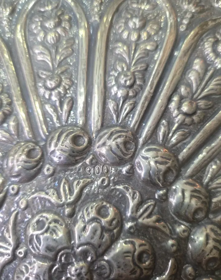 Beautiful mirror in great condition, heavy piece. Stamped 900, good quality silver. Lots of it :-) Measures approx 25x25cm. Thanks for looking:-)